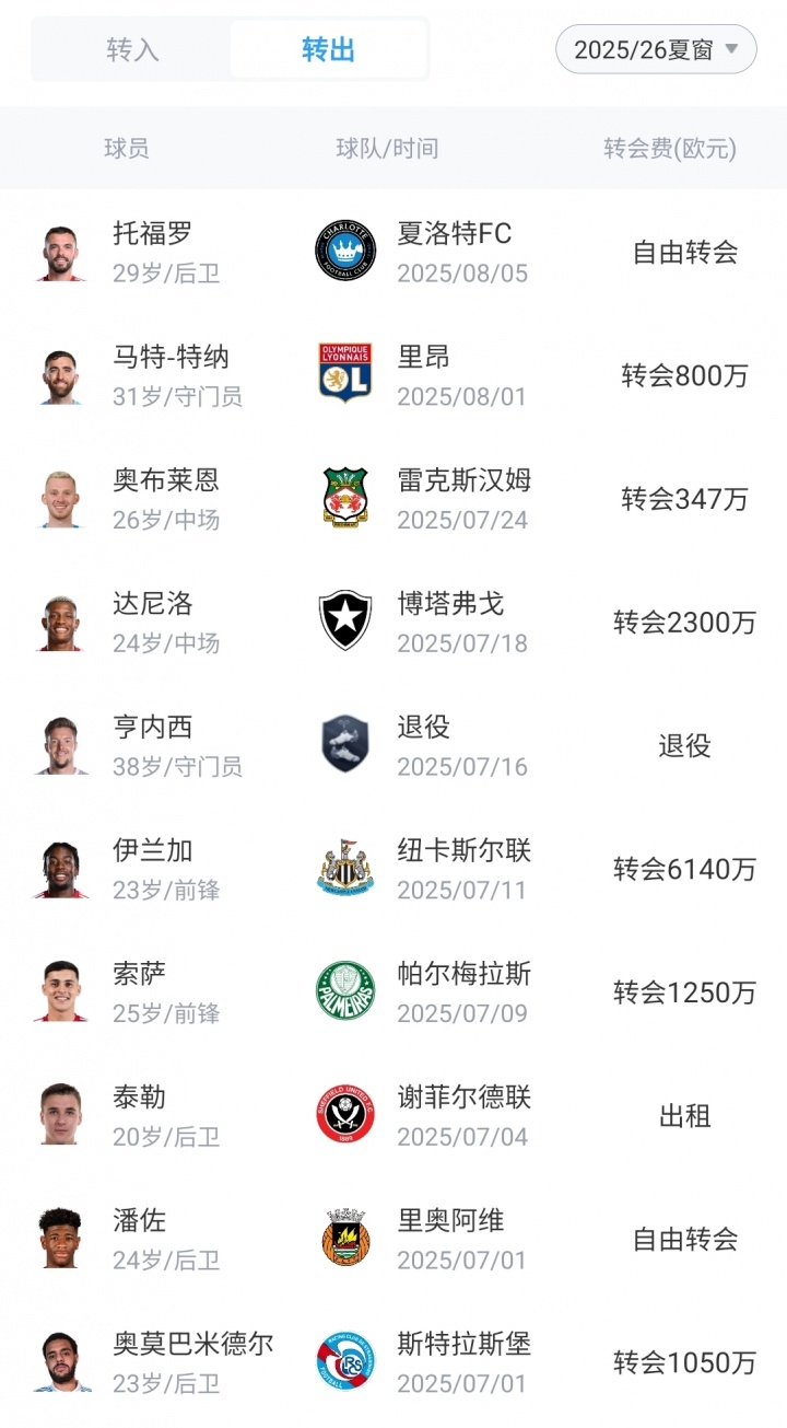 诺丁汉森林今夏卖人(总计1.1887亿欧)↓