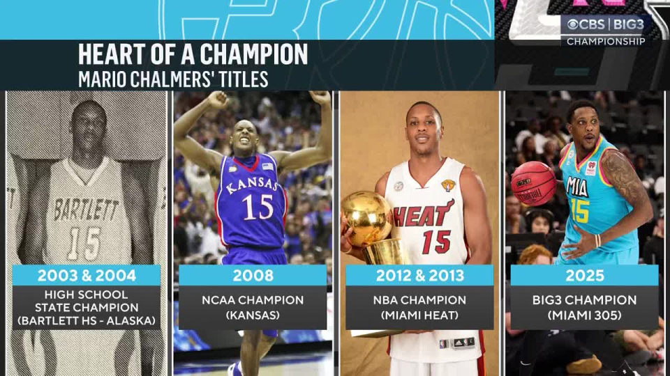 现年39岁的查尔莫斯,冠军履历早已十分丰富:2002年和2003年,他在阿拉斯加州的高中时期两度夺得州冠军;2008年,随堪萨斯大学拿下NCAA总冠军;之后又随热火队斩获两座NBA总冠军奖杯;2019年,他效力于意大利博洛尼亚维图斯队,助力球队夺得国际篮联冠军联赛冠军;如今,在佛罗里达中央大学校园举办的这场赛事中,他再添一座Big3联赛冠军奖杯。