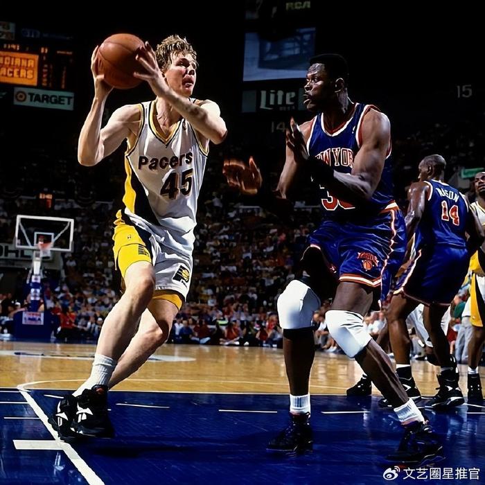 这里最值得一提的就是纽约尼克斯,乔丹退役给所有东部球队都留出了机会,1994年总决赛尼克斯一度3:2领先差点拿下总冠军,所以95赛季他们自然希望卷土重来,结果没想到魔术成为黑马并且常规赛三次交手3:0三杀尼克斯,这样一来帕特莱利自然不希望季后赛过早碰到魔术,于是赛季末一段操作后尼克斯顺利东部第三从而在首轮和次轮避开了魔术,首轮3:1拿下骑士,结果没想到次轮在步行者这里掉了链子,系列赛尤因全程被身高2米24的里克史密茨压制,前四场尼克斯1:3落后,接着连扳两场后抢七大战95:97遗憾败北。