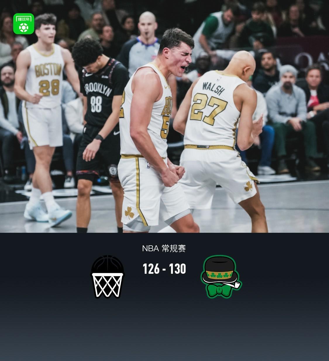 凯尔特人加时130-126篮网,普里查德32分,布朗27+9+12